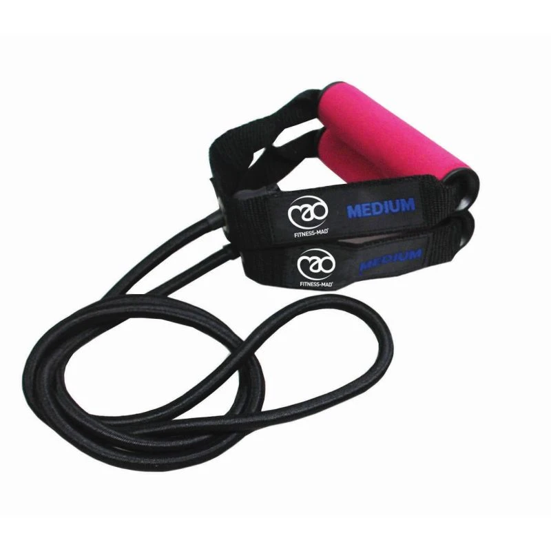 The Fitness-Mad Resistance Tube  is a high quality resistance tubing with comfortable and easy to grip foam covered handles.
