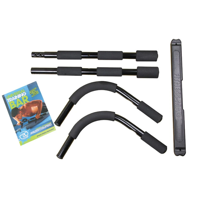 Transform any room into a gym with the Fitness-Mad Universal Training Pull Up Bar. Simply attach this versatile workout tool to a door or use on the floor to enhance your workouts. The training bar can strengthen your muscles and improve your endurance in exercises such as press ups, pull ups and push ups.