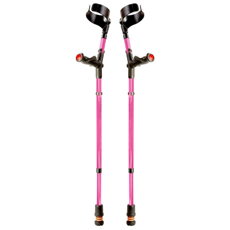 Standard crutches tend to be uncomfortable and hard to use, especially when travelling over any kind of rough terrain. The Flexyfoot Anatomic Comfort Grip Double Adjustable Crutch (Pair)Â avoids this problem thanks to its game-changing Flexyfoot ferrule, which is designed to absorb impact shock, and has far superior grip and tread depth.