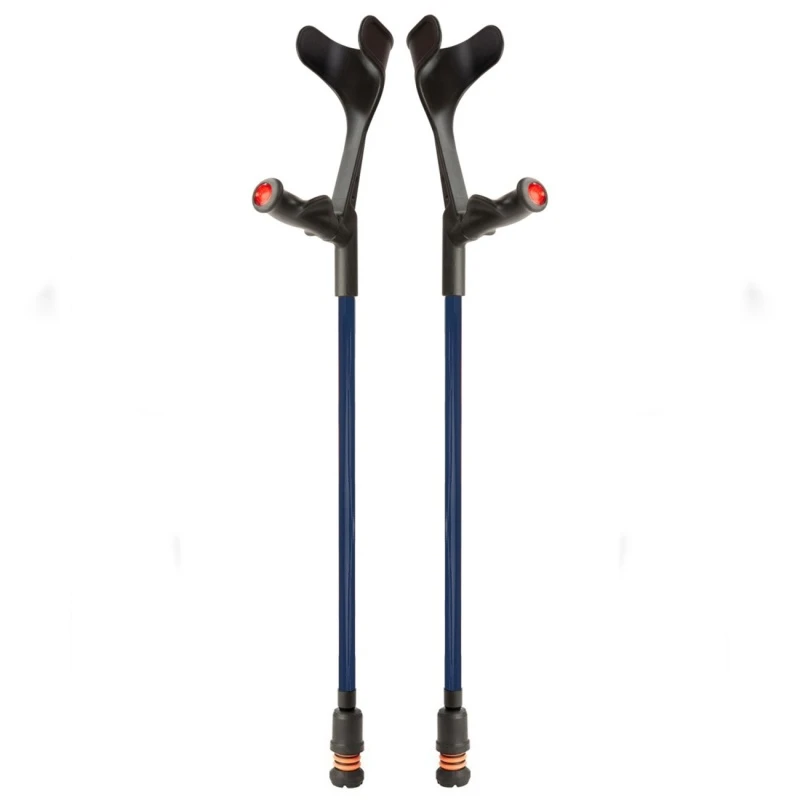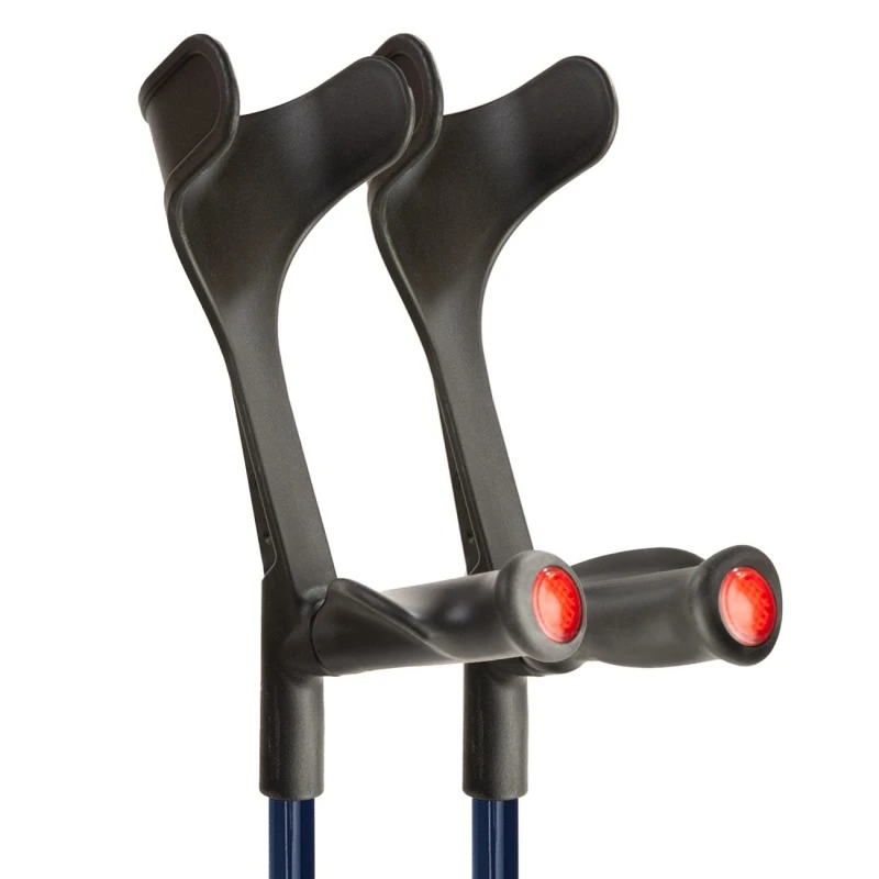 Open cuff crutches are less bulky and considered more modern looking than closed cuff alternatives. However, closed cuff crutches don’t need to be held at all times, so offer greater hand freedom. If you’d prefer a closed cuff crutch, take a look at the Flexyfoot Comfort Grip Double Adjustable Blue Crutches (Pair).
