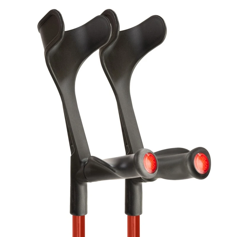 Open cuff crutches are less bulky and considered more modern looking than closed cuff alternatives. However, closed cuff crutches don’t need to be held at all times, so offer greater hand freedom. If you’d prefer a closed cuff crutch, take a look at the Flexyfoot Comfort Grip Double Adjustable Red Crutches (Pair).