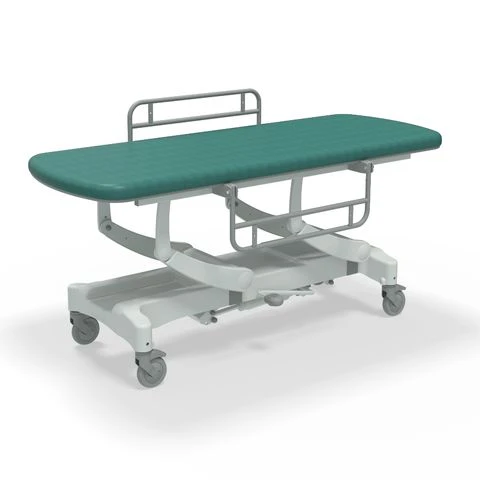 - Hydraulic height adjustment enables operator to position the patient as required